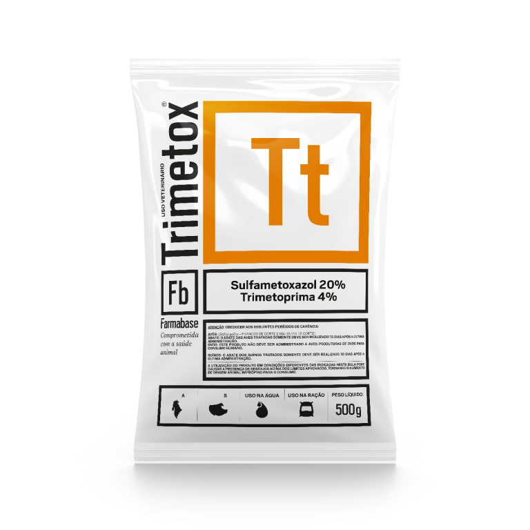 TRIMETOX® é um medicamento sob a forma de pó solúvel à base de sulfametoxazol e trimetoprima de amplo espectro de ação e cujos componentes ativos apresentam efeito sinérgico no controle das doenças respiratórias e entéricas de aves e suínos.